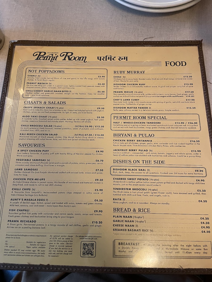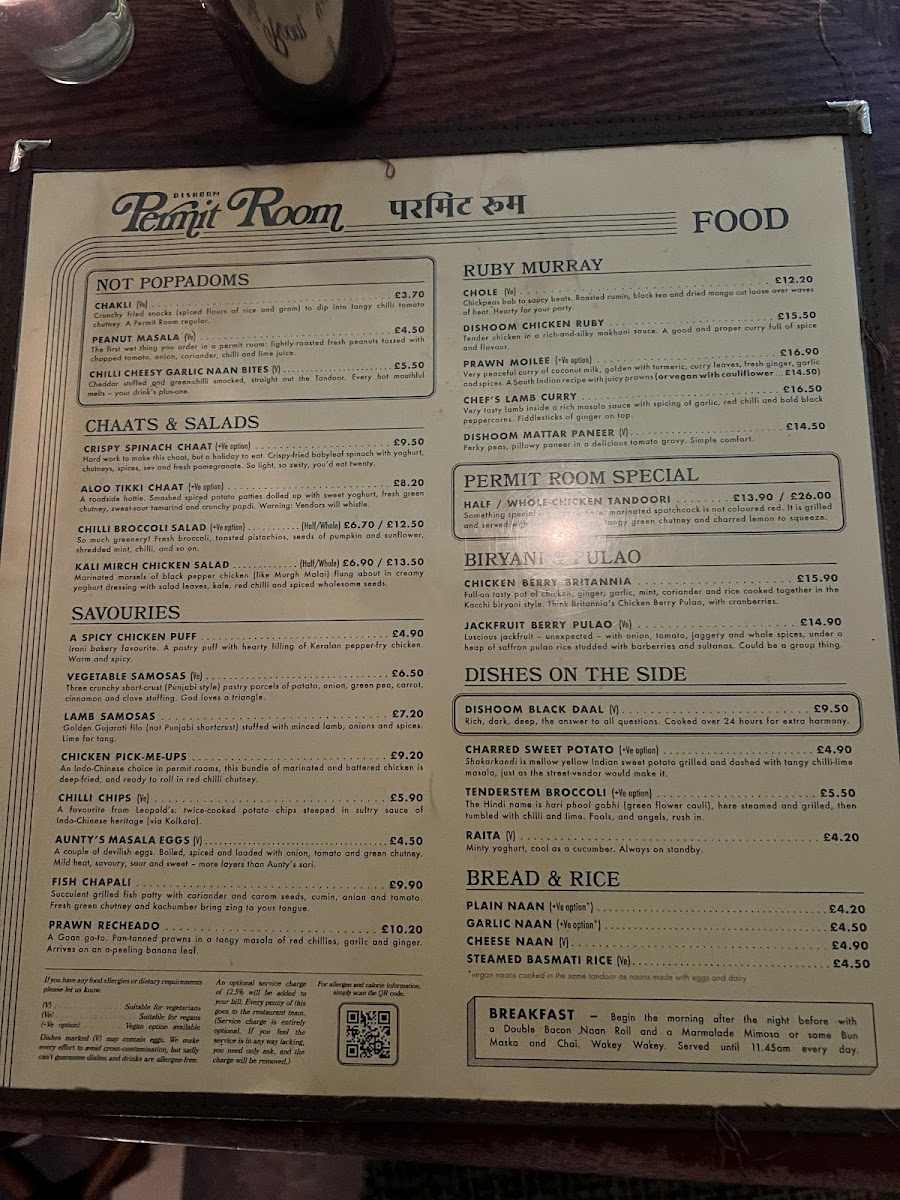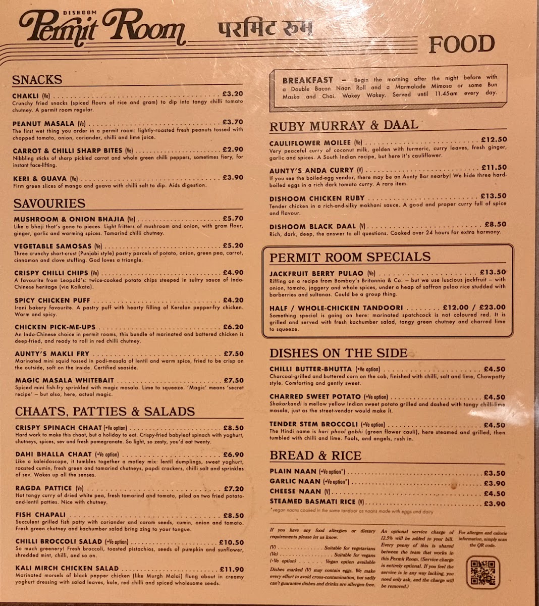The Dishoom Permit Room Brighton menu is a celebration of bold flavors and high-quality ingredients. From the moment you sit down, you are greeted with a warm and welcoming atmosphere, which perfectly complements the flavorful dishes. One standout offering is the Chicken Ruby, a rich, aromatic curry with a perfect balance of spices and tender chicken, which has been a favorite among regulars. The House Black Daal is another highlight, slow-cooked to perfection and brimming with deep, savory flavors that leave you craving more. For vegetarians, the Vegan Baida Roti provides a delicious, plant-based option that does not compromise on taste.