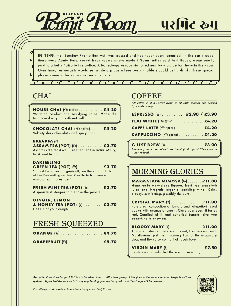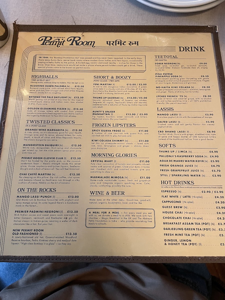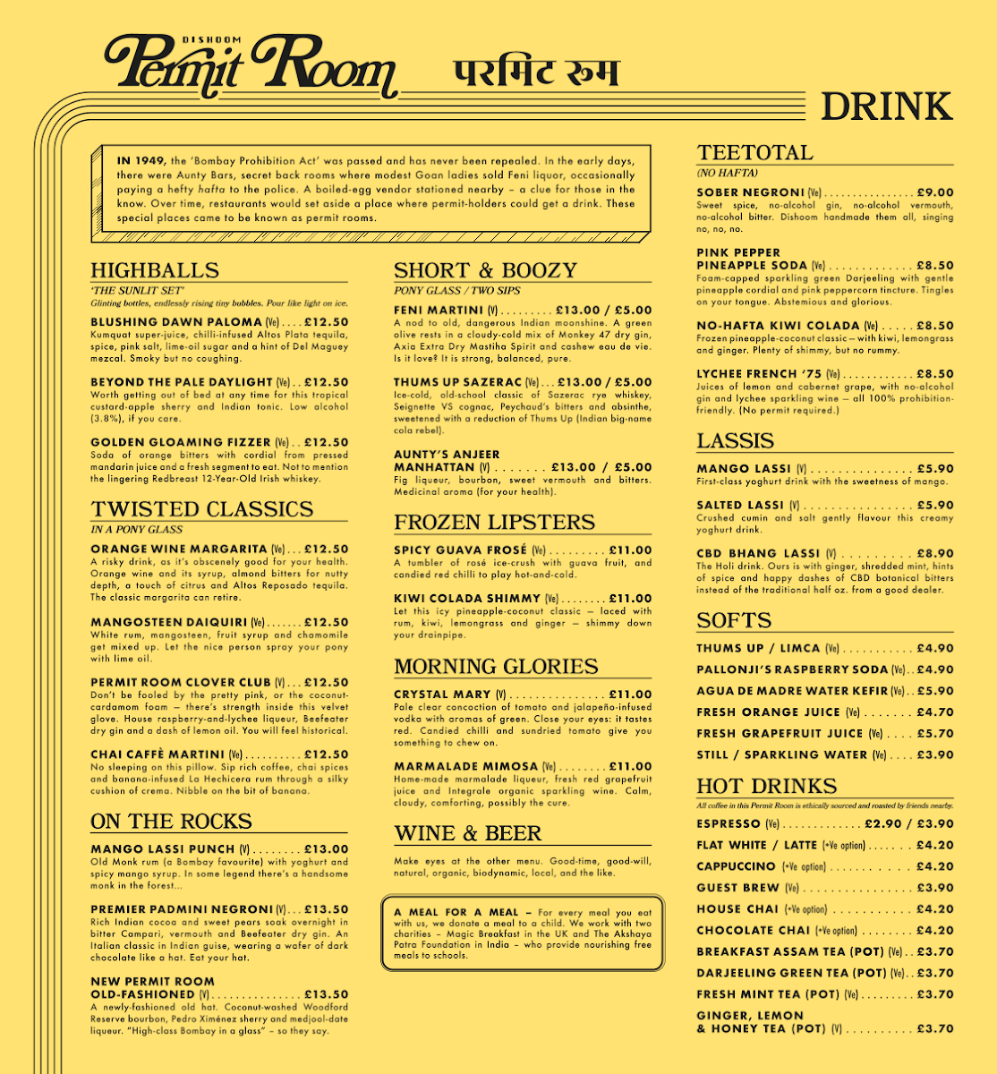 The Dishoom Permit Room Brighton menu is a celebration of bold flavors and high-quality ingredients. From the moment you sit down, you are greeted with a warm and welcoming atmosphere, which perfectly complements the flavorful dishes. One standout offering is the Chicken Ruby, a rich, aromatic curry with a perfect balance of spices and tender chicken, which has been a favorite among regulars. The House Black Daal is another highlight, slow-cooked to perfection and brimming with deep, savory flavors that leave you craving more. For vegetarians, the Vegan Baida Roti provides a delicious, plant-based option that does not compromise on taste.